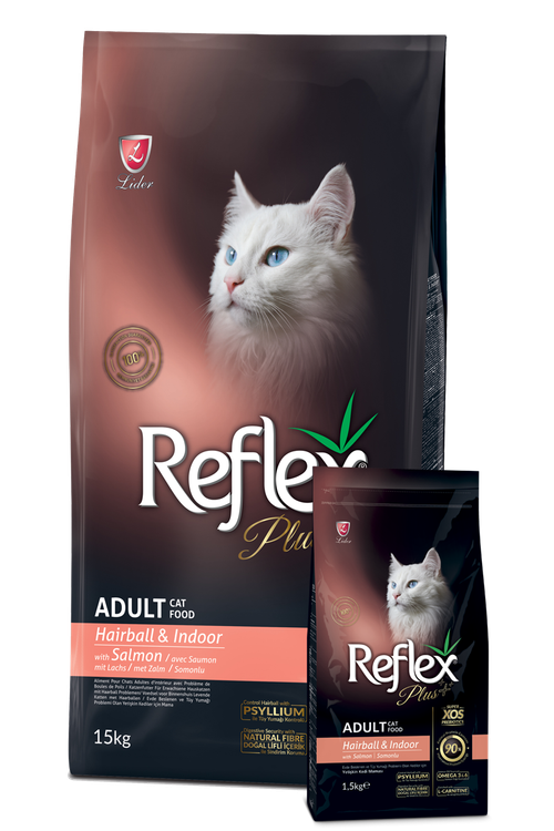 غذای خشک گربه بالغ رفلکس پلاس هیربال با طعم سالمون - Reflex Plus Hairball Salmon